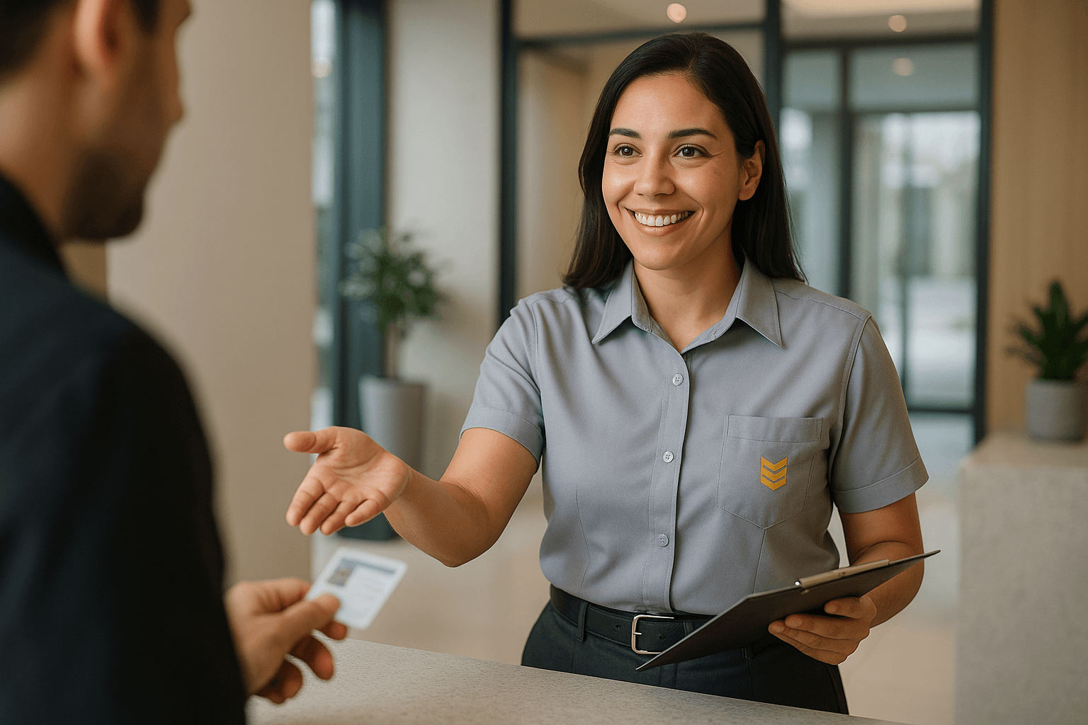 A recepção é muito mais do que um ponto de controle: é o cartão de visitas e a primeira experiência de quem chega ao seu empreendimento. Com mais de 22 anos de atuação em Facilities, a Esquadrão Patrimonial entende essa responsabilidade e oferece um serviço de recepção que une cordialidade, organização e segurança. Nossos profissionais são altamente qualificados, atuam com postura ética exemplar e representam sua empresa ou condomínio com profissionalismo, credibilidade e eficiência.